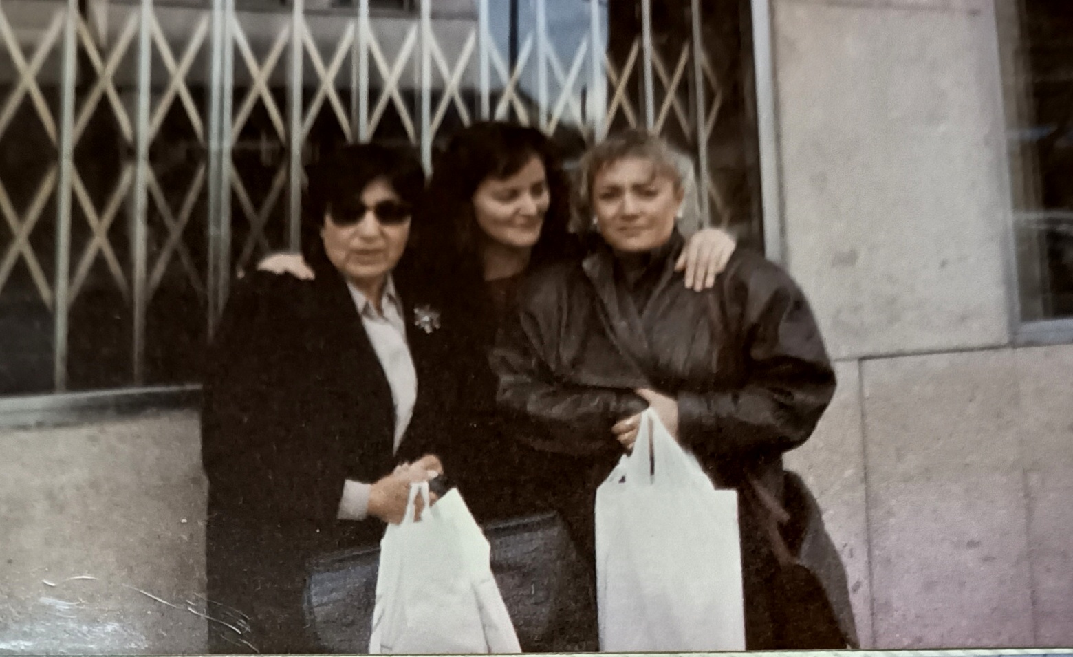 Olga Cano con Mariángeles Herranz a la izquierda. Es Madrid 1988. Mariángeles todo un referente del doblaje madrileño y Olga que llegó a ser toda una estrella en Madrid y por ende en el doblaje español.